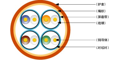 4对屏蔽线缆,Cat 5e,LOSH, 24AWG